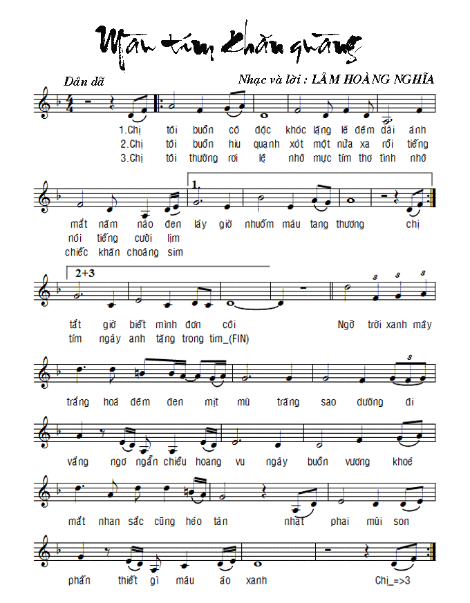 Nhạc: Lâm Hoàng NghĩaHòa-âm: Cao Thế DungTiếng hát: Thùy An