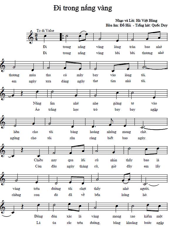 Nhạc: Hà Việt HùngHòa-âm: Đỗ HảiTiếng hát: Quốc Duy