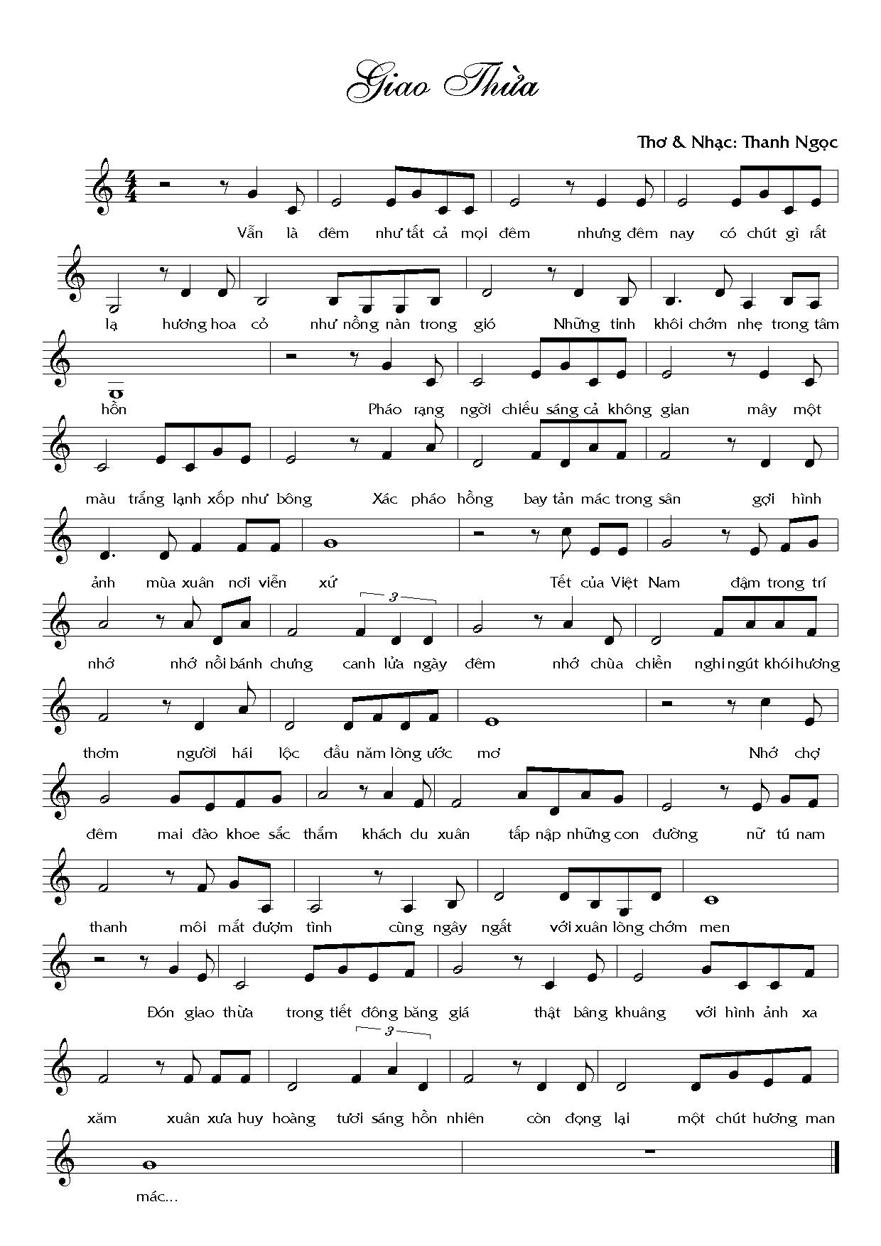 Nhạc: Thanh Ngọc